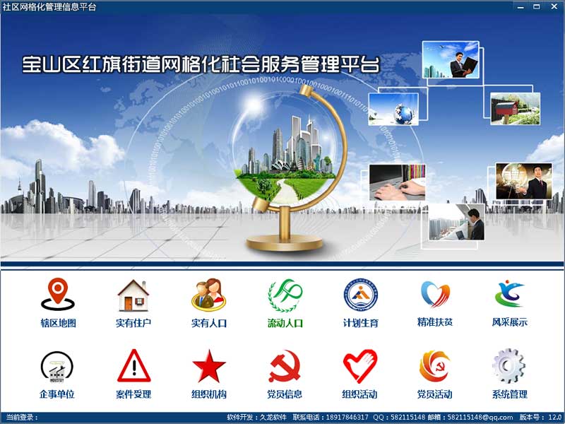 社区网格化管理系统是一款可以通过现代科技手段,将现实的社区信息数字化,使管理人员能够通过计算机就可以直接查询住户信息、居民等信息的管理软件。信息采集除非必须键盘输入,全部实现智能导入、鼠标点选录入,最大程度的提高了工作效率。系统通过现代科技手段,将现实的社区信息数字化,使管理者通过计算机就能直观的掌握辖区人口分布情况和营业场所分布情况,进而对辖区内营业场所信息、住户信息、居民信息以及居民的财产信息进行全方位管理。【软件特点】