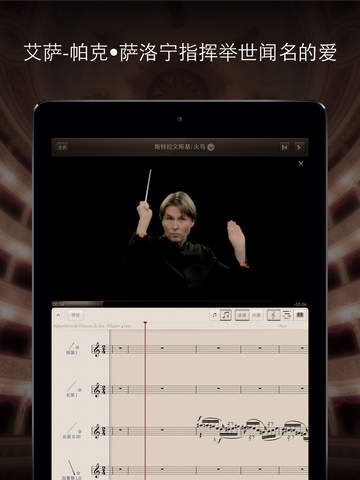 听命于您的乐团:以前所未有的方式体验古典音乐,引人入胜的功能包括:视频,同步乐谱,简谱,以及艾萨-帕克?萨洛宁的讲评。发现节拍图示(BeatMap):突破性的表演可视化,显示了乐团不同分部的实时音乐脉动,帮助您了解每一作品的复杂性。用手指按住单独听到乐队的不同部分。