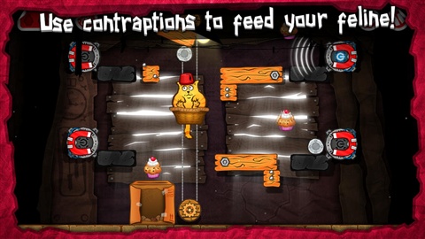 游戏的玩法比较简单,通关鼠标点击和滑动操作来破坏主人设置好的机关障碍,比如划动操作可以让猫咪使出利爪,将卡在关键位置的木条撕碎;或是点击固定在钢板两头的螺帽,将其扭松取下,让总之合理的利用重力,就可以让胖猫抵达终点。