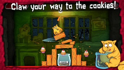 帮助这只胖胖的猫到达装饼干的桶里,用爪子撕裂木头,滚动着前进。