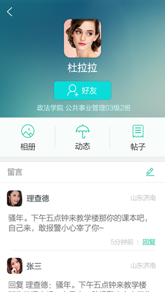 作为学校官方,简化了事物、通知、文件下达的流程,也最大程度的增加了学生与校方之间的交互,增加网上签到、网上班级的功能。所有的通知一键发送,并会在学生的手机客户端内弹出,做到第一时间全部覆盖。同时也可开通电子校刊校报,亦可实时开通相关活动的互动功能。