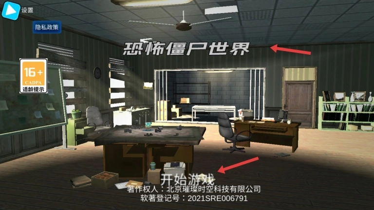 1. 游戏的初始界面呈现出室内场景,其上有“开始游戏”的字样,只需点击,便能踏入满是僵尸的游戏世界,开启一场冒险之旅。