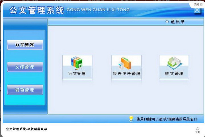 根据实际情况录入行文收发中的报表发送管理,收文管理,行文管理。 报表发送管理:是关于报表的详细登记和报表发送的一些情况。 收文登记管理:是关于收文登记的记录和分送单位及处理情况。 行文管理:是关于一些文件发放的记录情况,内容详细明确。