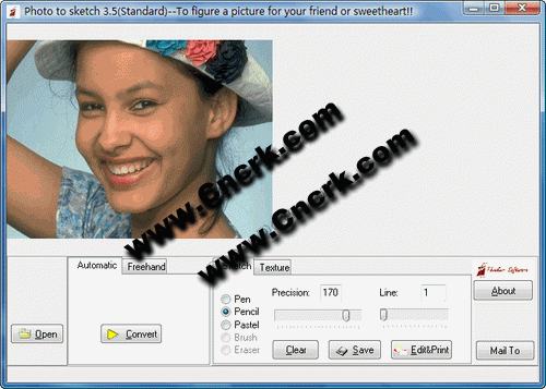 Photo to Sketch 是一款照片修改软件,只需要点击几次按钮就可以把你的照片转换成为素描的形式。支持BMP,JPG,WMF等格式,不需要动用庞大的Photoshop,小软件一样可以给你出色效果