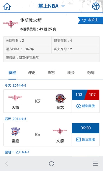 掌上NBA的功能众多:1.查看今日正在进行,以及比赛战报和技术统计;