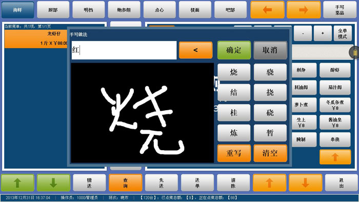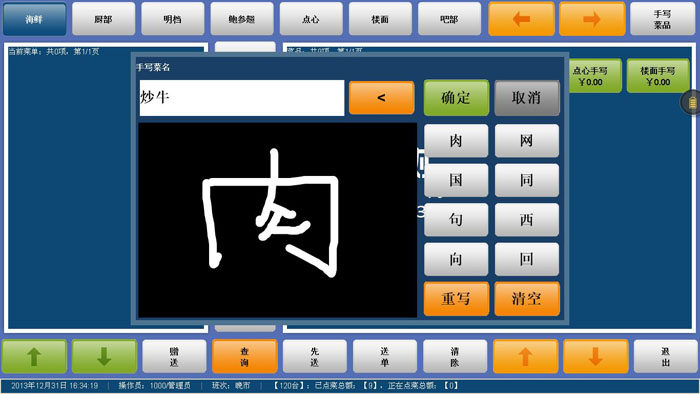 完全独立开发的电子菜谱接口,电子菜谱操作功能强大