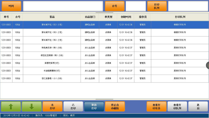 1)系统带有实时的厨打监控功能,杜绝了厨房打印丢单的现象;