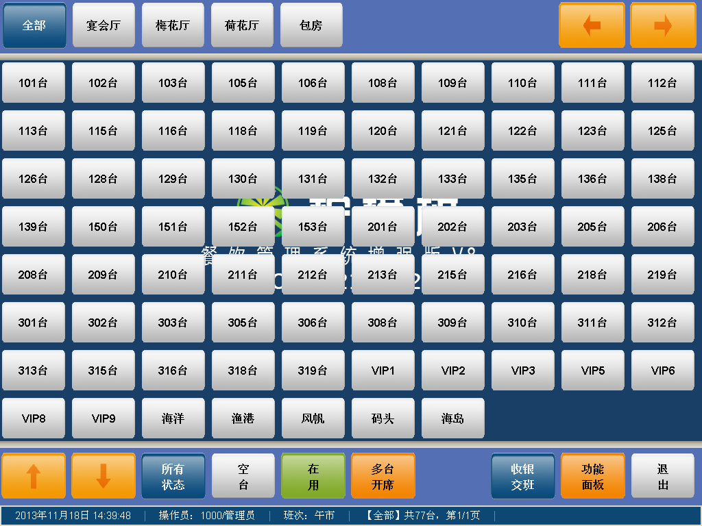 3)查询餐台使用状态,进行开台、换台、并台、撤台、修改台位信息等操作。