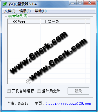 现在一般的网友都有好几个QQ号。每次登录QQ都要选择一下QQ并键入密码,虽然可以使用“保存密码”功能,但也是很不方便的。这个登录器可以为了解决烦恼。软件使用很简单,是事先在软件里把你所有的QQ号的号码和密码设置好,用的时候只要选择你要登录的QQ号就可以完成自动登录了。其工作原理只不过是把你的号码和密码保存到本地,并对密码进行了加密 ,然后调用你本地的QQ软件来实现登录的,它本身不会连接网络的,所以很安全,可以放心使用。