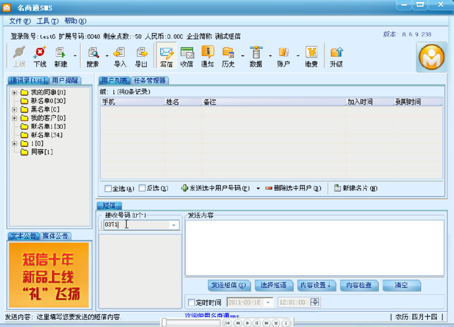 名商通SMS是针对企业内部及外部不同需求和应用方面,而专门定制开发的系统软件。它完全集成了企业用户所特有的短信应用功能。名商通SMS短信群发平台,具有全国畅通、高速群发、资费低廉和成功率高的特点。广泛用于日常管理、客户关系管理、营销管理、售后服务、市场宣传等工作中,由于短信不受使用时间和地点的限制,这使得工作沟通变得实时、方便、快速、高效、到位,从而大大节省电话或传真的费用。名商通短信群发平台,具有全国畅通、高速群发、资费低廉和成功率高的特点。广泛用于日常管理、客户关系管理、营销管理、售后服务、市场宣传等工作中,由于短信不受使用时间和地点的限制,这使得工作沟通变得实时、方便、快速、高效、到位,从而大大节省电话或传真的费用。