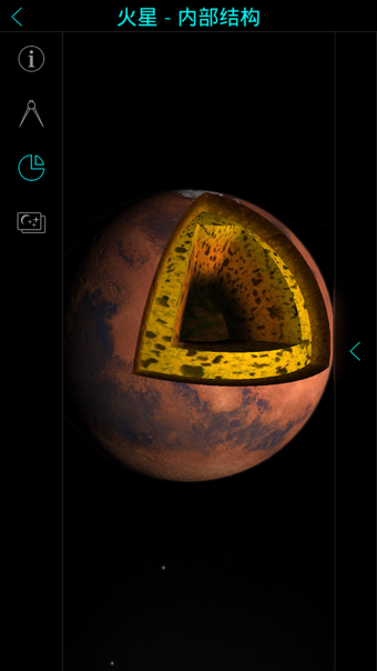 让我们在宇宙中找到更多关于我们的邻近行星,透过确定的速度,回转周期,时间,享受穿梭其间。选择一特别星球成为宇宙的中心,就能看到土星,木星,火星和天王星的卫星。在三维模型中的太阳系漫游应用 程式是 完全 与真实 太阳系相同的。