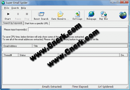 Super Email Spider 能够使用web快速可靠的建立电子邮件列表,它能够根据指定的关键字,利用搜索引擎搜索到大量电子邮件地址