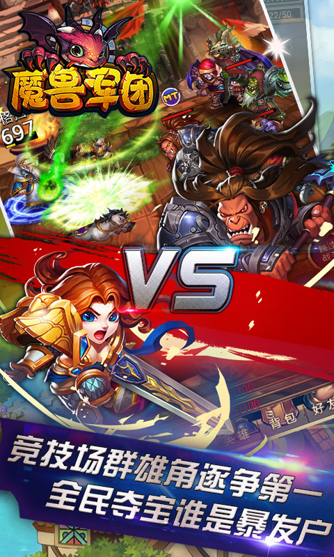 《魔兽军团》是一款欧美题材Q版微操即时制手机游戏。在游戏里,玩家将化身一名实力强大的战士,作为主角带领众多英雄一起斩妖除魔。合理的英雄搭配、适当时机点击技能释放,能让你在战斗中更加无往不利。竞技场中相互切磋,方能提高实力。夺宝玩法中发起挑战,夺取罕有宝物,让你如虎添翼。要塞战万人混战,谁能笑到最后?泰坦之路漫漫,顶峰造极者必是少有的英杰。世界BOSS为祸人间,群起攻之,屠龙者将是何人?闯荡世界,怎能少了同道中人,加入公会,和其他玩家一起养育公会萌宠,消灭入侵魔物,公会大战一触即发,你又岂能错过?《魔兽军团》,邀你来战!