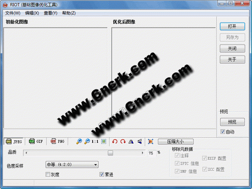 RIOT是一款图像优化工具。您可以缩小图像文件的压缩和优化他们能够实现更小的文件大小,同时保持足够的图像质量。您可以设置想要的图像质量,格式和其他格式的具体图片和即时预览之前的结果,以JPG或GIF格式