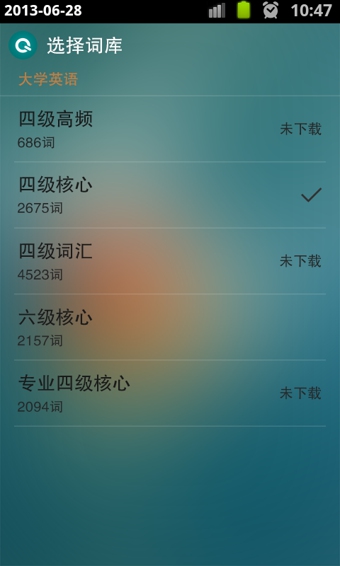 学习锁屏神器-英语单词锁屏是一款由查字典网出品,新颖、实用、全面的英语锁屏软件,是一款很好的背单词应用,这款单词锁屏神器涵盖30多个英语专业词库,全面覆盖英语学习考试的需要,单词锁屏软件词库支持顺序、逆序和乱序。实用的单词记忆辅助应用,通过独特的滑动解锁操作,达到记忆英语单词的目的。这款背单词锁屏软件支持安卓版下载。短短几秒时间让您记住英语单词,帮助您学习,来体验学习锁屏的强大能力吧。