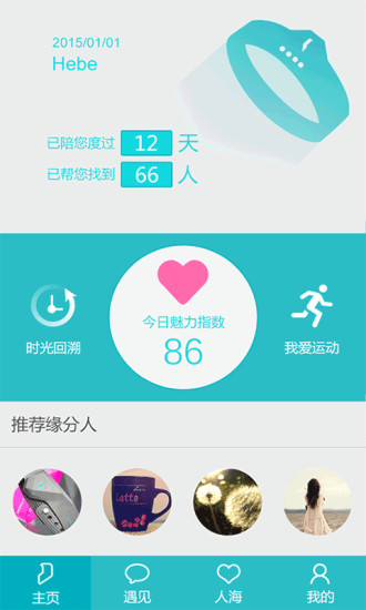 1.遇见,百米之内遇见真爱采用最先进的定位技术,打破GPS定位的局限,无论身在何地,只要身边有一定缘分人经过,手环就会根据你俩匹配程度,自动亮灯提示,APP遇见里,随时随地记录你遇见的附近的所有TA, 无需你任何操作,空闲时即时发起聊天认识TA吧,说不定,“TA”就是你的另一半。