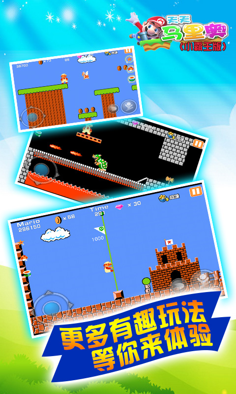 1、完美的还原了儿时经典超级玛丽;2、简单的操作,流畅的操作体验,为你带来极致的动作享受;