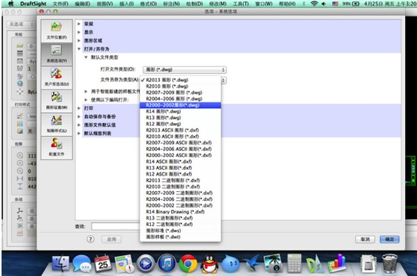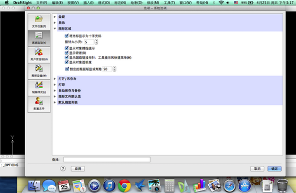 draftsight mac对于DWG/dxf文件的读和写支持*储存DWG/DXF文件返回先前的版本* 打印到文件(.plt, .jpg, .pdf, .png, 和 .svg) 附着图像文件(.bmp, .gif, .jpg, .jpeg, .png, .tif, 和.tiff)附着外部参照图形创建二进制或ASCII DXF文件* 存入.wmf, .jpeg, .pdf, .png, .sld, .svg, .tif, 和 .stl文件格式公开到eDrawings或Drawings Now 多页面PDF创建。