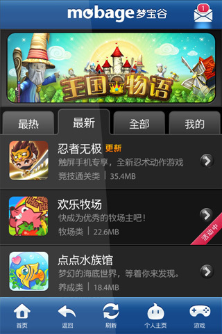 Mobage梦宝谷游戏中心为玩家网罗国内外精品手机网游、手机社交游戏和休闲游戏,免费下载。同时,又为用户提供丰富的社交功能,如留言板、站内信及基于兴趣的组群活动等。