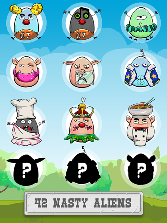 《42个怪物 42 Monsters》的故事讲述了一群奇怪的外星人入侵地球,把地球的水果蔬菜都抢走了,玩家要做的就是投掷各种地球的物品,把半空中的外星人打下来。但外星人周围总是无规律地漂浮着各种蔬菜水果,玩家必须瞄准时机投出物品,完美避开水果,才能一关接一关地打败外星人!【游戏特色】