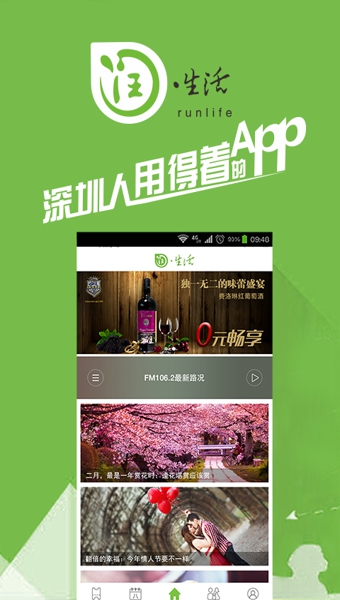 润生活App是一款专为深圳人打造的“好用、好玩、好看、有惊喜”的随时随身移动互联产品。该软件1.0版本目前仅面向深圳地区用户,其特色功能有,深圳地区交通路况查询的106.2路况信息、各类门票免费抢的发票、周末娱乐好推荐的星期八、聚集父母的亲子玩乐讨论的遛娃圈四大功能,是一款深圳人用得着的APP,并为你创造品质生活。【软件特点】