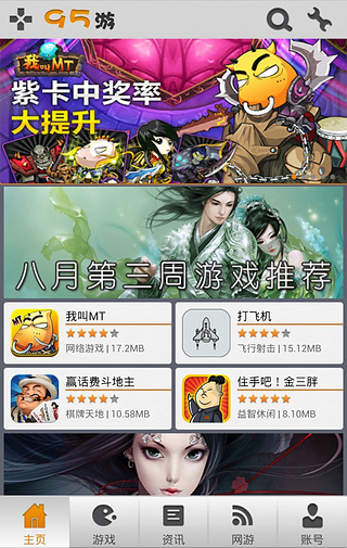 95游戏中心是一款专为安卓手机指定的游戏中心,该软件里拥有海量精品手游资源,各种类型的安卓手机游戏应有尽有,并且第一时间推荐新上线的手游,让你可以快速体验游戏的别样乐趣。
