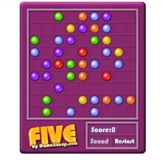 点选任何颜色的球,接着在任意空白处再点一次,球就会跑到所指定的地点,目的是将同颜色的五颗球排成一直线或一横线,就可消除。
