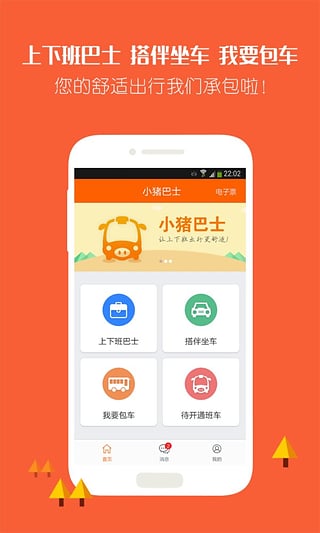 小猪巴士app是一款非常实用的生活应用,通过小猪巴士,您不仅可以预约每天上下班的专车,免除您每天挤公交地铁的烦恼,还有旅游包车服务,绝对以最优惠,最满意的服务让您满意。