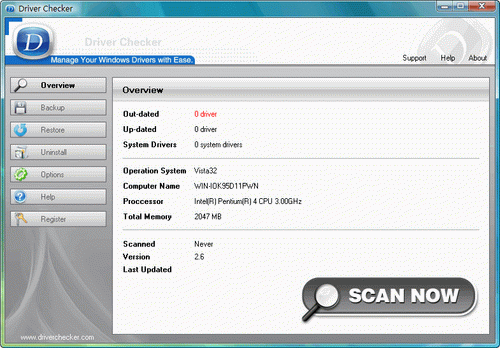 Driver Checker 支持以下这些驱动程序:打印机驱动程序,USB驱动程序,声音/音频驱动程序,Vista的驱动程序,蓝牙驱动程序,鼠标驱动器,键盘驱动器,磁盘阵列驱动器,扫描仪驱动程序,视频驱动器,调制解调器驱动程序,网络驱动器, Linksys的驱动器,摄像头驱动程序,图形驱动器,VGA驱动程序及其它Windows驱动程序