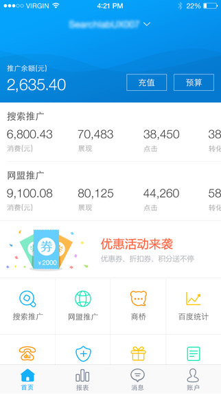 百度推广app百度旗下商业团队推出的基于iPhone的百度推广账户管理应用百度推广客户端,百度推广app可以让百度推广人员在移动终端上管理搜索推广、网盟推广,查看最新、最重要的消息,通过百度推广客户端使用最方便快捷的方式进行账户充值。.