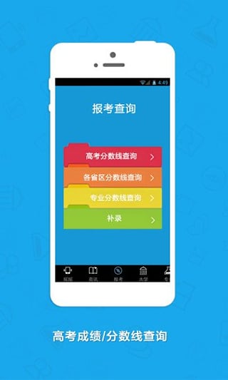 1、全面分析高校理念录取分数线,各省区批次分数线等数据,根据相对分、录取分、投档线等近几年数据和变化趋势,智能化推荐考生合适学校,提高考生高考志愿填报准确率。考生只需要输入分数和考区,摇一摇后,就能得到哪些学校适合志愿填报。2、非常丰富的资讯和专家支招:热门学校、热门专业、适合深造的学校和专业、学校人脉等应有尽有,让广大考生高考志愿填报不盲目,有的放矢。