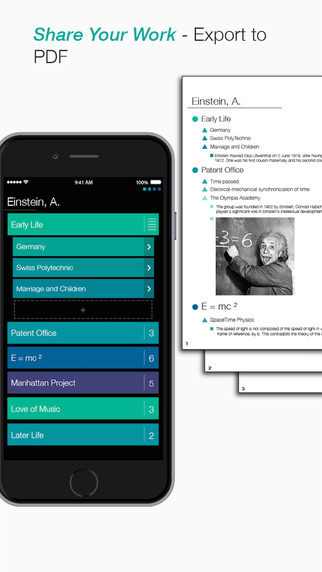—直接共享和/或 PDF 导出,让大家分享您的列表和大纲。