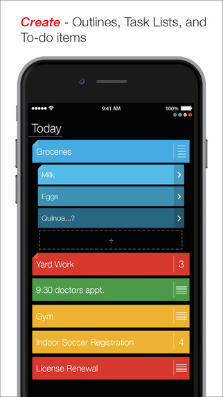—以优先等级和颜色组织所创建的任务和构想—标记项目完成来跟踪您的进度和效率