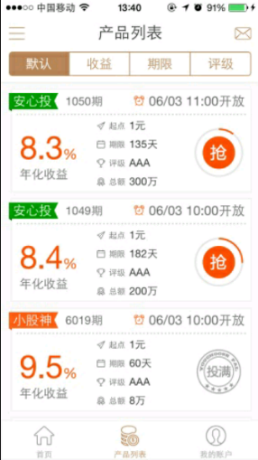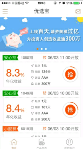 优选宝平台为用户提供互联网投资理财服务;用户可通过平台抢标,购买产品;