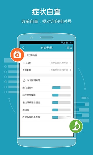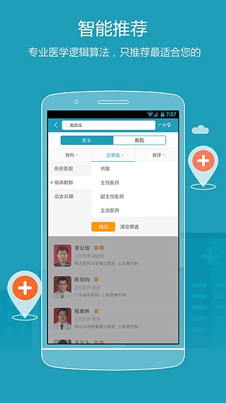 4.[智能推荐]专业医学逻辑算法+诊后用户的评价+您的疾病和地区=推荐最适合您的医院和医生!