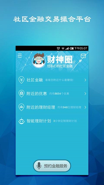 财神圈安卓版这款软件最大的特色就是让你用打车软件一样的方便来找你的理财经理,上门服务上门的也是尊贵极了。