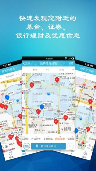 1、创新的金融服务O2OAPP,您可以像打车软件一样找理财经理啦!实时提示您位置附近的优质金融产品和信用卡优惠活动。