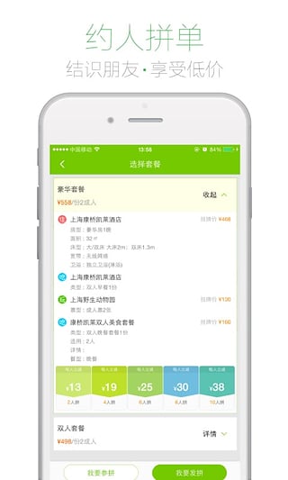 2.拼周末:召唤小伙伴一起结伴出游,人数越多优惠越多哦~