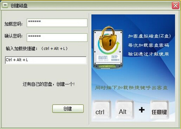 个人密盘(z盘)是一款个人磁盘加密软件,软件采用虚拟盘文件加密技术,利用硬盘中的剩余空间创建加密分区,验证后自动加载加密磁盘,用户可以像操作真实磁盘一样将个人私密文件(夹)存放在密盘中,退出后盘符会自动消失,彻底杜绝了用户数据泄露的危险,从而加密文件夹,而且更加隐私,更加安全。【个人密盘(Z盘)软件特点】