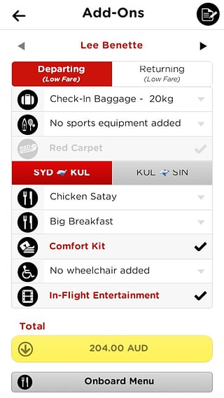使用全新的亚航移动应用程序,轻松预订航班并办理登机。 简单的布局让预订流程简化明了。 您可以轻松选取最低票价,输入您的详情并确认预订。