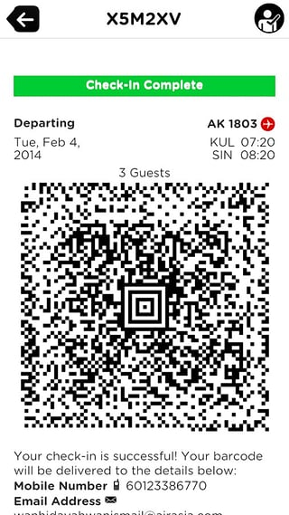 当您在机场值机设备上扫描移动条形码后,您可免去排队等待时间,直接打印登机牌。 当您通过手机办理登机时,会收到移动条形码。