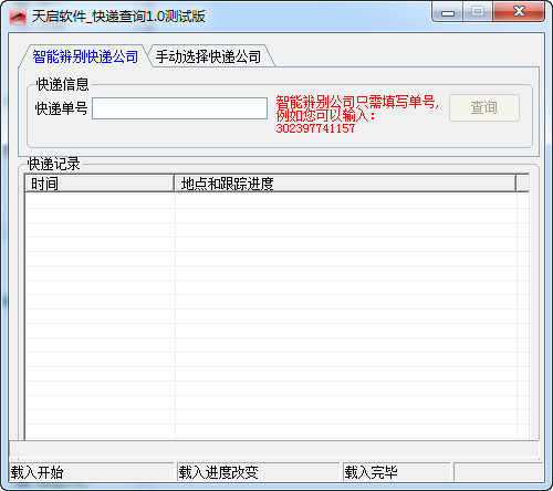 天启快递查询集合了几十家快递公司供大家查询,包括中铁快运、申通快递、联邦快递、中通速递、顺丰快递、中国邮政、汇通快运、统一快递、天天快递、希伊艾斯、长宇物流等等。【使用方法】