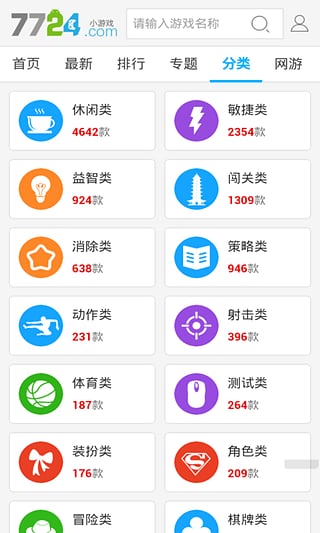 7724游戏盒是一款小巧简单的手机游戏盒子。该游戏盒子里拥有海量的手机应用与手机游戏,还可实时为玩家提供最新、最好玩的手机在线小游戏,让玩家可以掌握第一手游戏资讯。