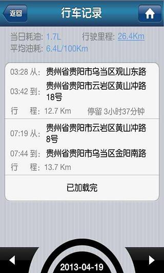 3.轨迹分段:可查看行车记录,根据点火熄火时间分段显示轨迹。