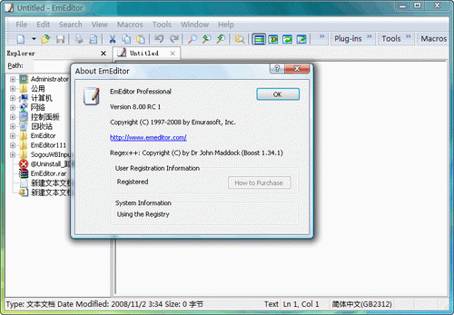 EmEditor Professional V9.06 32Bit 英文绿色特别版 简单好用的文本编辑器,支持多种配置,自定义颜色、字体、工具栏、快捷键设置,可以调整行距,避免中文排列过于紧密,具有选择文本列块的功能(按ALT 键拖动鼠标),并允许无限撤消、重做,总之功能多多,使用方便,是替代记事本的最佳编辑器