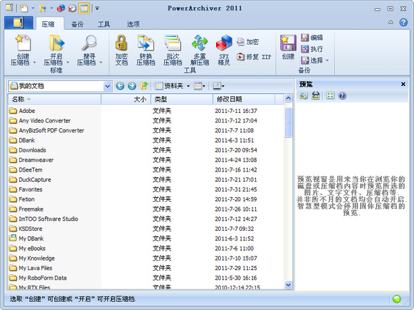 自动备份功能;多种格式支持-支持ZIP, 7-Zip, CAB, TAR, GZIP, BZIP2, RAR, ACE及更多格式;