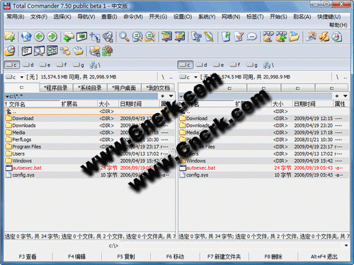 功能强大的全能文件管理器(简称 TC)。支持随意自定义的菜单、工具栏、快捷键,给您最大的自由,打造个性 TC。一般的文件操作,如搜索、复制、移动、改名、删除等功能应有尽有,更有文件内容比较、同步文件夹、批量重命名文件、分割合并文件、创建/检查文件校验 (MD5/SFV) 等实用功能。内置 ZIP/TAR/GZ/TGZ 格式的压缩/解压功能,ZIP 格式还支持创建加密及自解包功能。此外,不仅可以直接打开(解开) ARJ/CAB/RAR/LZH/ACE/UC2 等压缩包,配合插件或相应的压缩程序,更可创建这些格式的压缩包,就像创建和打开文件夹一样简单。而搜索功能,无论是文件还是内容,同样支持在这些压缩包中进行。