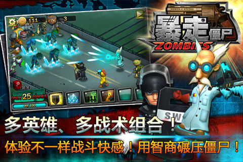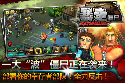 《暴走僵尸》是一款美漫风的僵尸射击手游,游戏中层出不穷的僵尸造型,各种奇葩、各种重口味应有尽有。操作简捷、节奏明快、画面绚丽、游戏平衡势必打造极具震撼的僵尸题材手游。面对如潮水一般的僵尸群你要怎么做?放弃那些傻傻的植物吧,只有人类才能拯救世界。让手中的电锯与机枪疯狂的杀戮所有敌人,让人类仅存的希望得以延续,让暴走的僵尸们永远沉默下去!【游戏特点】