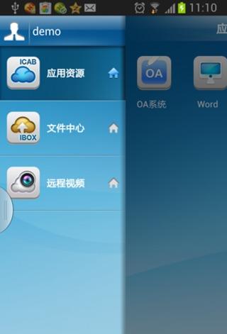 赛蓝移动云(ICAB)能够通过手机或PAD进行移动办公,并且不用进行任何二次开发,轻松登录即可实现办公.您还可以将办公产生的附件保存在手机中,可以将手机上的图片,文件,视频上传到个人服务存储中心.您还能够将新的事物拍摄下来,将审批的文件共享给同事,让办公变得轻松,多趣! 赛蓝移动云(ICAB)在iPhone,iPad,Android Phone/Pad,WinCE等多平台上使用,并提供多种语言界面.现在就来体验吧!
