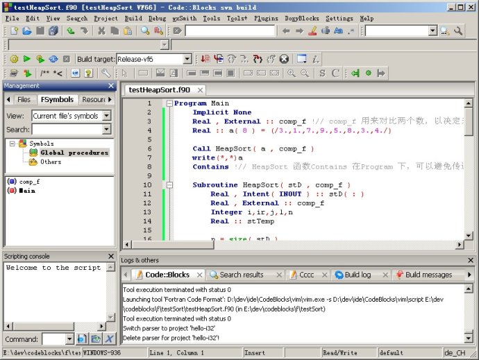 由面向Fortran的文本编辑器、Fortran本征函数提示和选择关键字组成的Visual Studio Fortran项目系统;Fortran 应用程序自定义创建引擎;